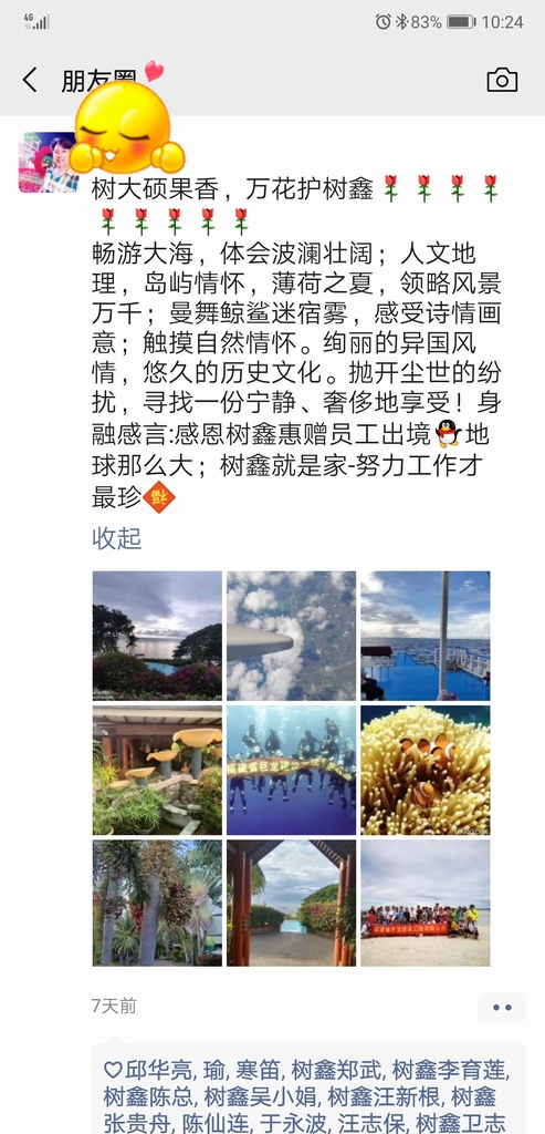 游覽過程中,大家情不自禁地發朋友圈跟朋友分享旅游經歷及美照,并各施文筆,精美句段層出不窮。