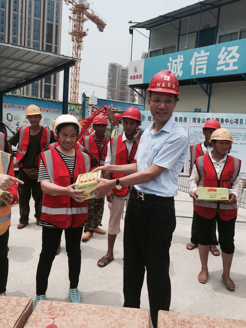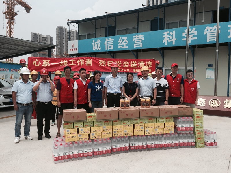 2018年8月24日上午,廈門市建設局聯合廈門市總工會蒞臨我司觀音山綜合服務中心項目慰問。建設局及工會相關領導對項目部一線員工不畏酷暑、嚴謹施工的精神進行了表揚,對項目部文明施工做了充分肯定并給出相關指導意見,最后在我司董事長陳開樹的陪同下向一線員工分發了慰問品。